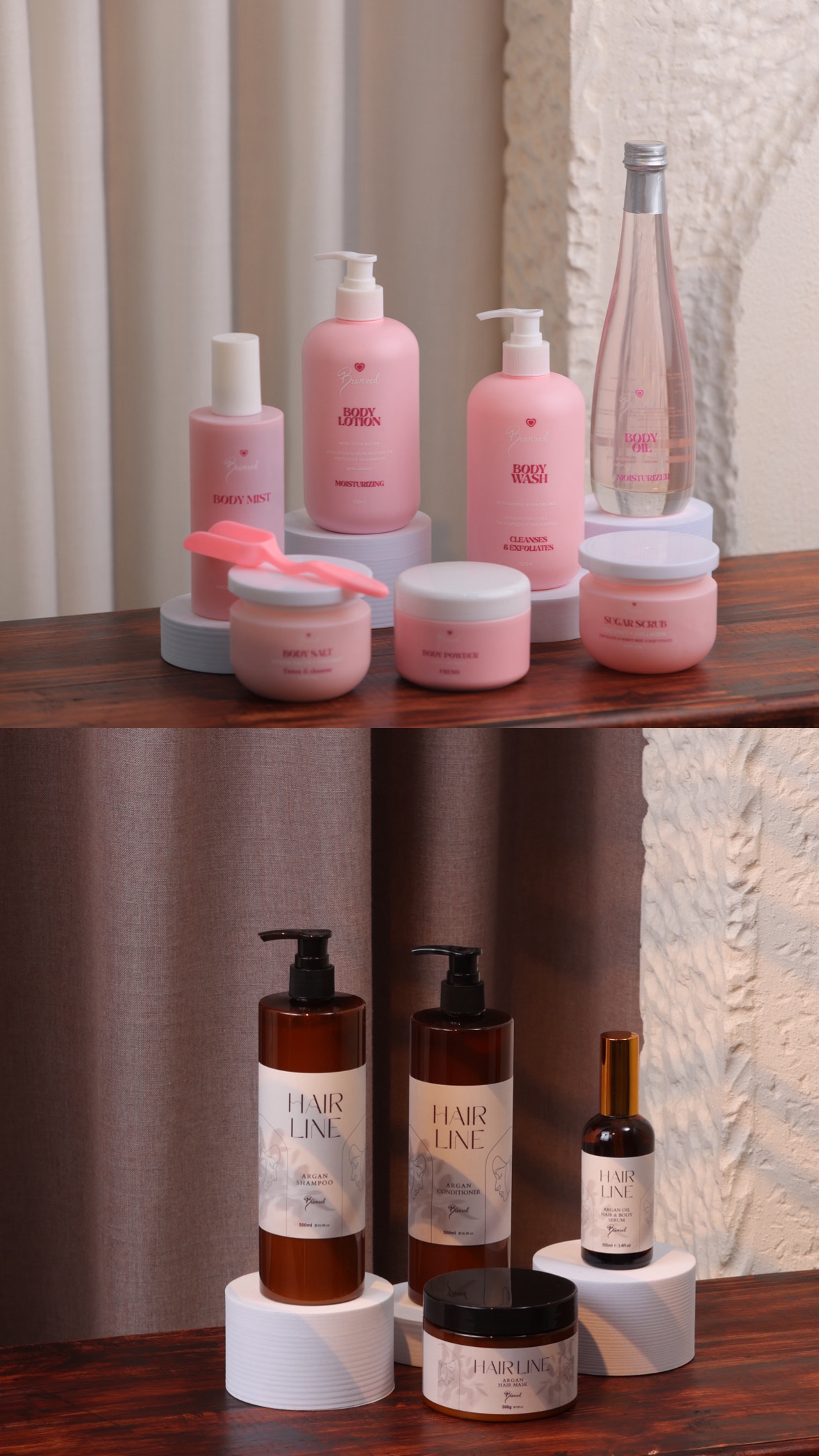 And our Body care includes ( shower gel, body scrub, body oil , body lotion, bath salt , powder, body spray)